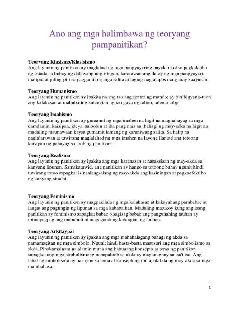 Ano Ang Mga Halimbawa Ng Teoryang Pampanitikan