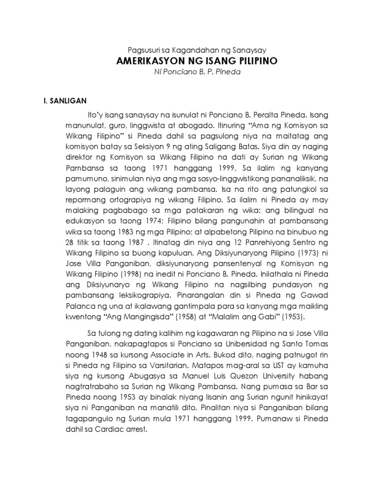Pagsusuri Sa Akdang Amerikasasyon