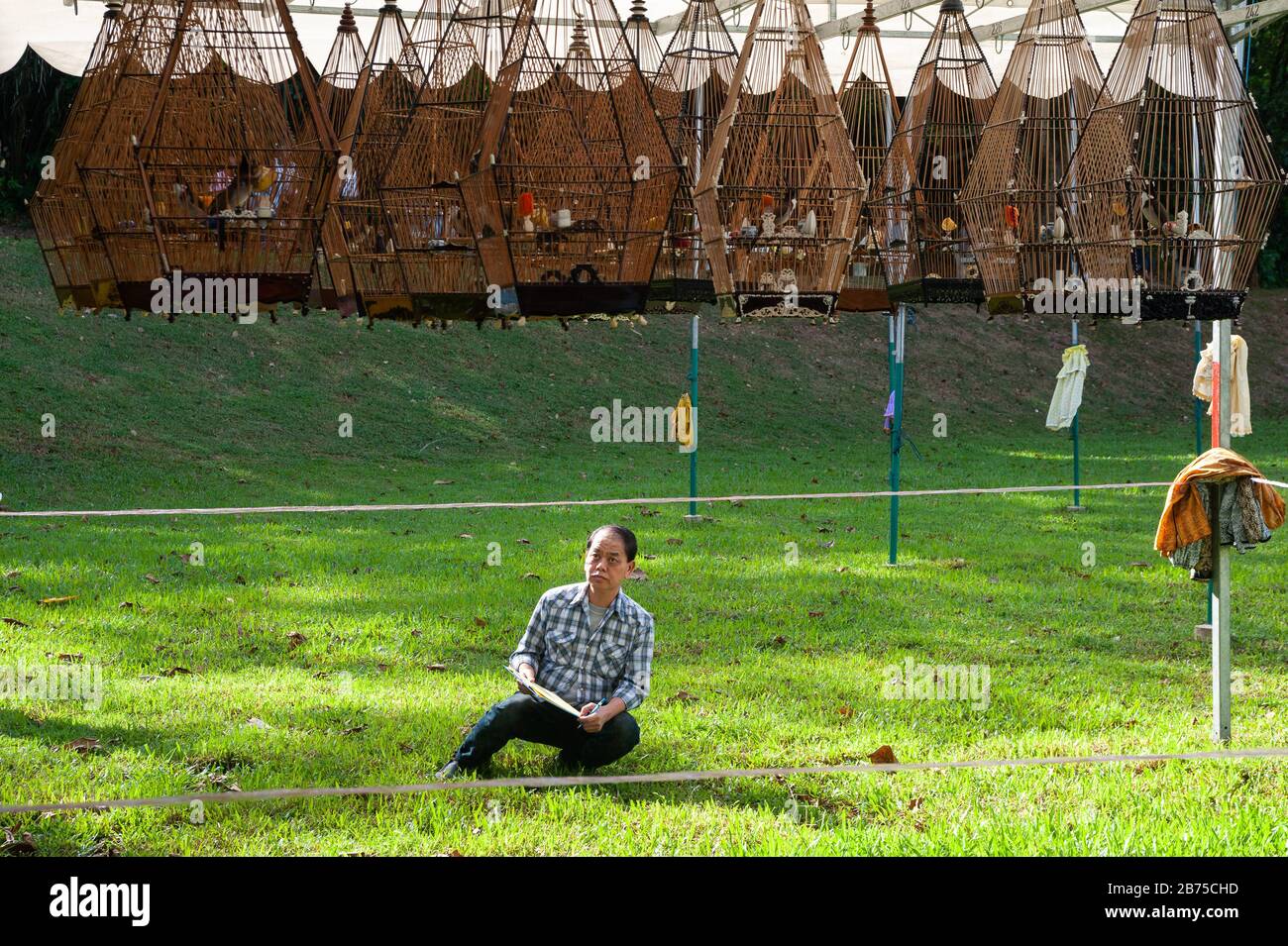 07 07 2013 Singapore Republic Of Singapore Asia A Judge Listens To The Chirping Of The Individual Birds During The Birds Singing Competition Stock Photo Alamy