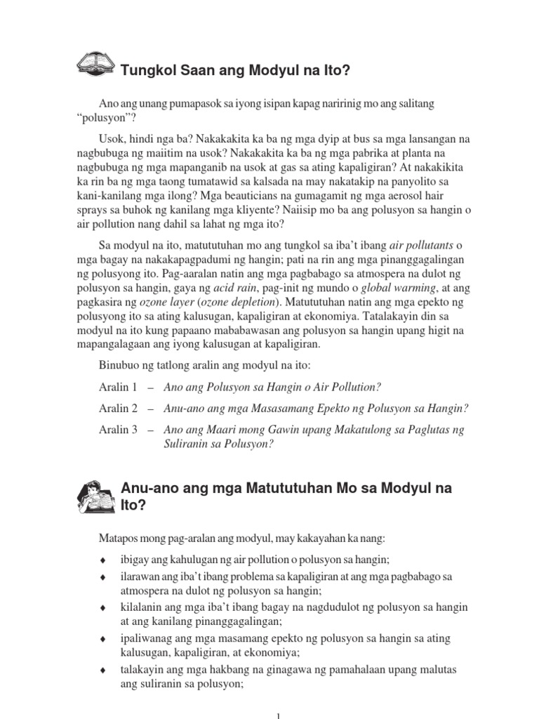 Minsan isang tanghalian habang ako ay teacher prefect sa aking mga mag-aaral naitanong sa akin ng isa kong estudyante kung bakit pa raw niya pag-aaralan ang Filipino kung magiging CEO naman siya ng kanilang kumpanya balang-araw. Alamin ang mga pakinabang ng paggamit ng solar energy. Impormasyon ng WHO Tungkol sa Polusyon ng Hangin salin sa Tagalog mula sa orihinal 2.