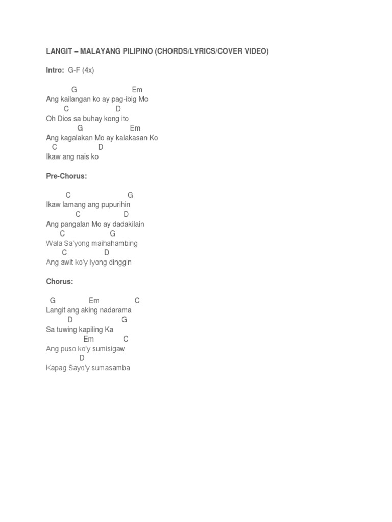 Langit Ang Aking Nadarama Lyrics With Chords Mp3 Minus One Hd Videoke Chords