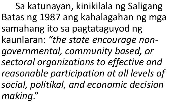 Sapagkat ito ay kanyang responsibilidad na makiisa o makipagtulungan sa mga opisyales nitoAng local na pamahalaan ay maaaring makaranas ng higit na kalayaan o awtoomiya. Likas na sa atin ang pakikipag-kapwa tao simula pa man noong tayo ay nilikha. Sa ganitong sistema umano nawawala ang tunay na kahulugan ng.